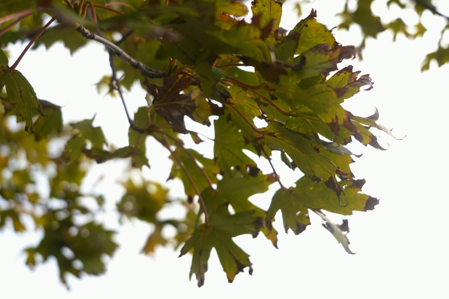 槭树的“颜面”是极薄的。陈嫣妮解说,槭树的树叶、树皮都容易受到日光灼伤。叶子在连续的暴晒下会变焦,提前零碎。树皮则会出现受损、开裂的情形,让微生物更容易入侵树木、变成感染。