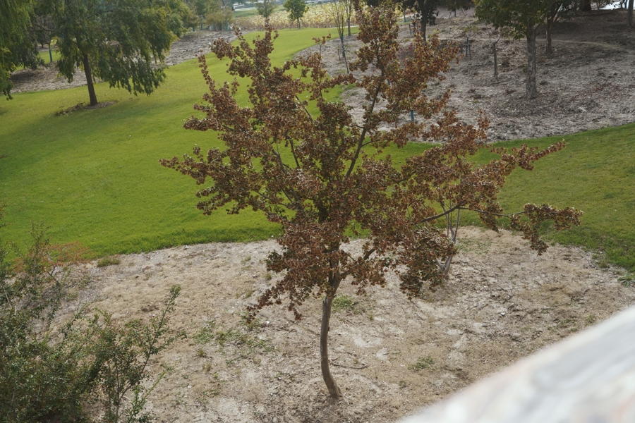 这是郗旺亲手种下的麻栎。他只是离开了一个周末,转头时就发现叶片统统萎蔫了。尽管他试图浇水救助,一周后如故等来了麻栎的死亡。