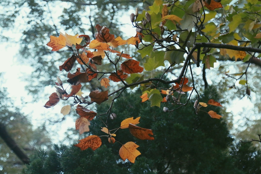 一些树叶仍是变色,但大宗叶子在绿色时仍是零碎。 冯蕊 摄