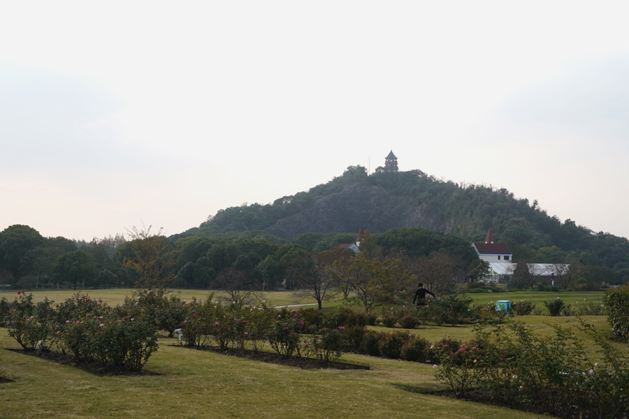 郗旺说,往年秋日的佘山早已变成黄色。冯蕊 摄